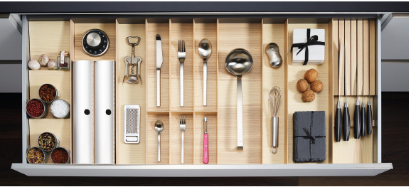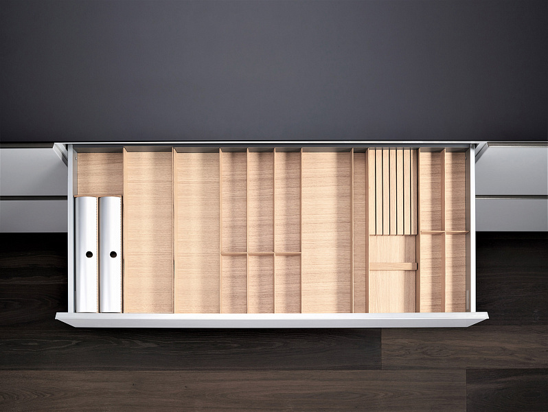 КОМПЛЕКТ лоток + делитель + держатели для фольги и для ножей, ФайнЛайн Линик 1000-1200 мм, глубина 500 мм, цвет ЯСЕНЬ светлый Kessebohmer