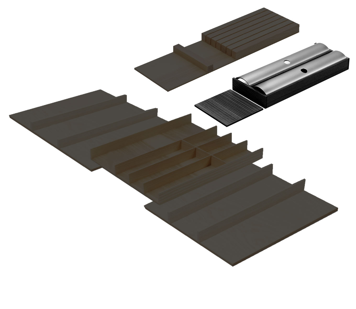 —КОМПЛЕКТ лоток + держатели для фольги и для ножей, ФайнЛайн Линик 1000-1200 мм, глубина 500 мм, цвет ЯСЕНЬ черный Kessebohmer