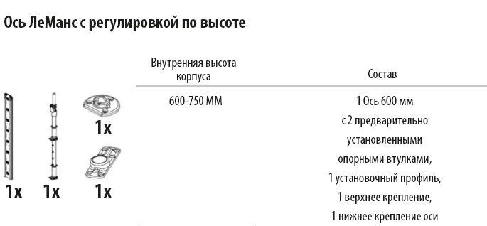 Комплект установочный, Леманс, H 600-750, Ось + крепежный профиль для полок, цвет АНТРАЦИТ Kessebohmer | официальный магазин
