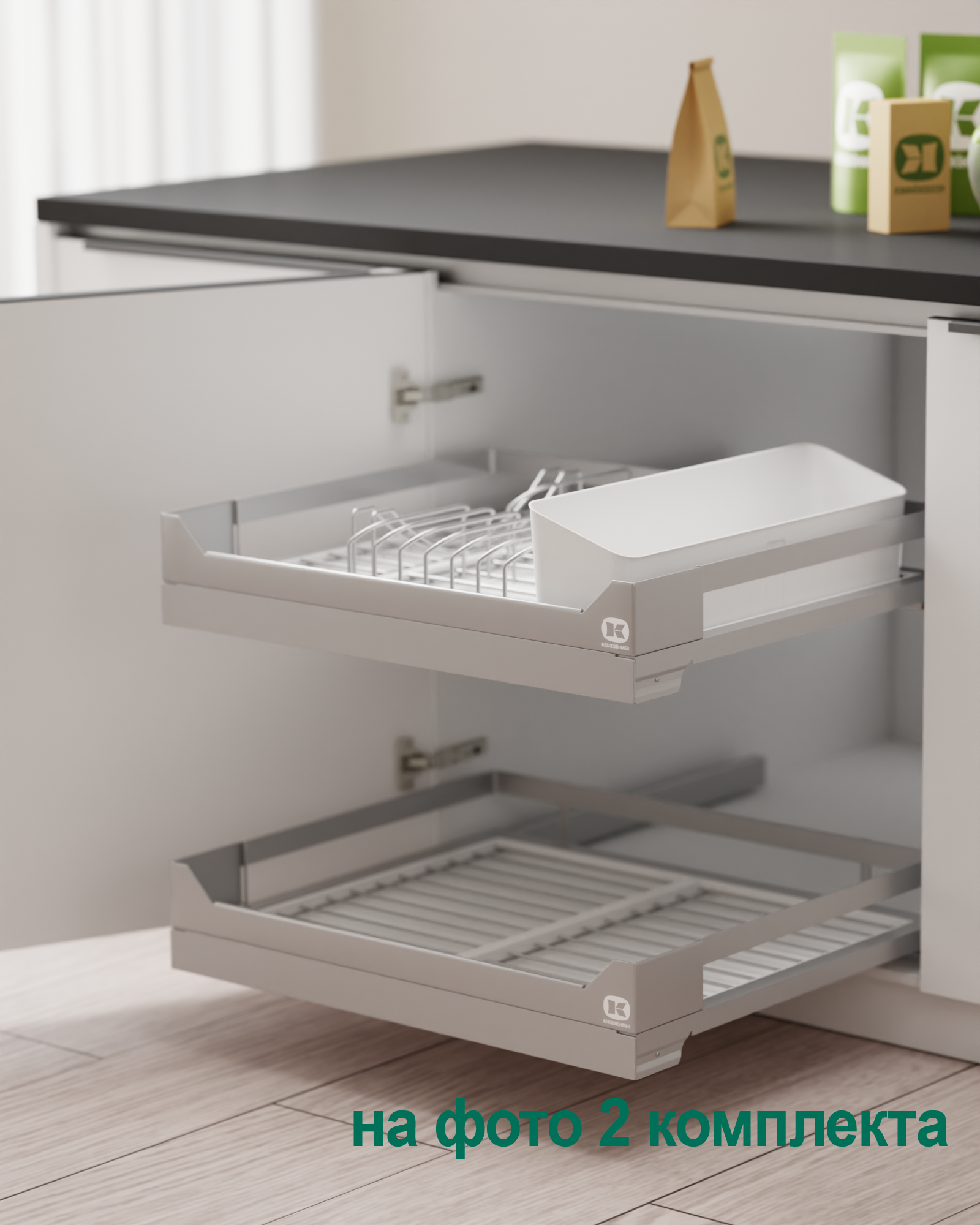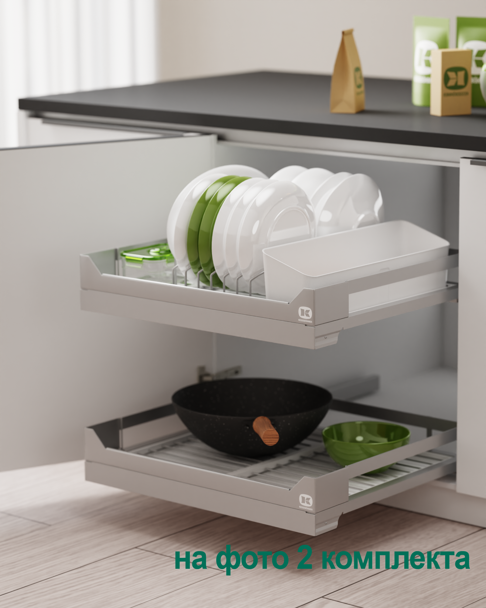 - 1 большой модуль для посуды + 1 большой модуль с решеткой + модуль для столовых приборов
