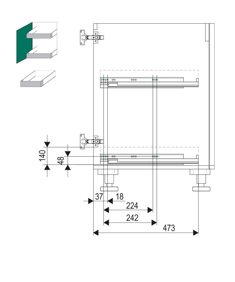- 1 большой модуль для посуды + 1 малый модуль для посуды + 1 малый модуль с решеткой