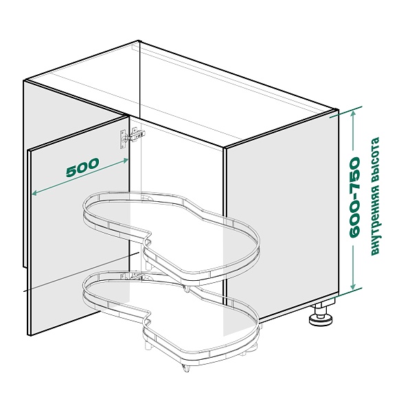 Комплект полок правый, Леманс 500 мм, Арена ПЬЮР, 2 полки + рычаги, цвет АНТРАЦИТ, цвет дна Антрацит, антислип (2603949846)