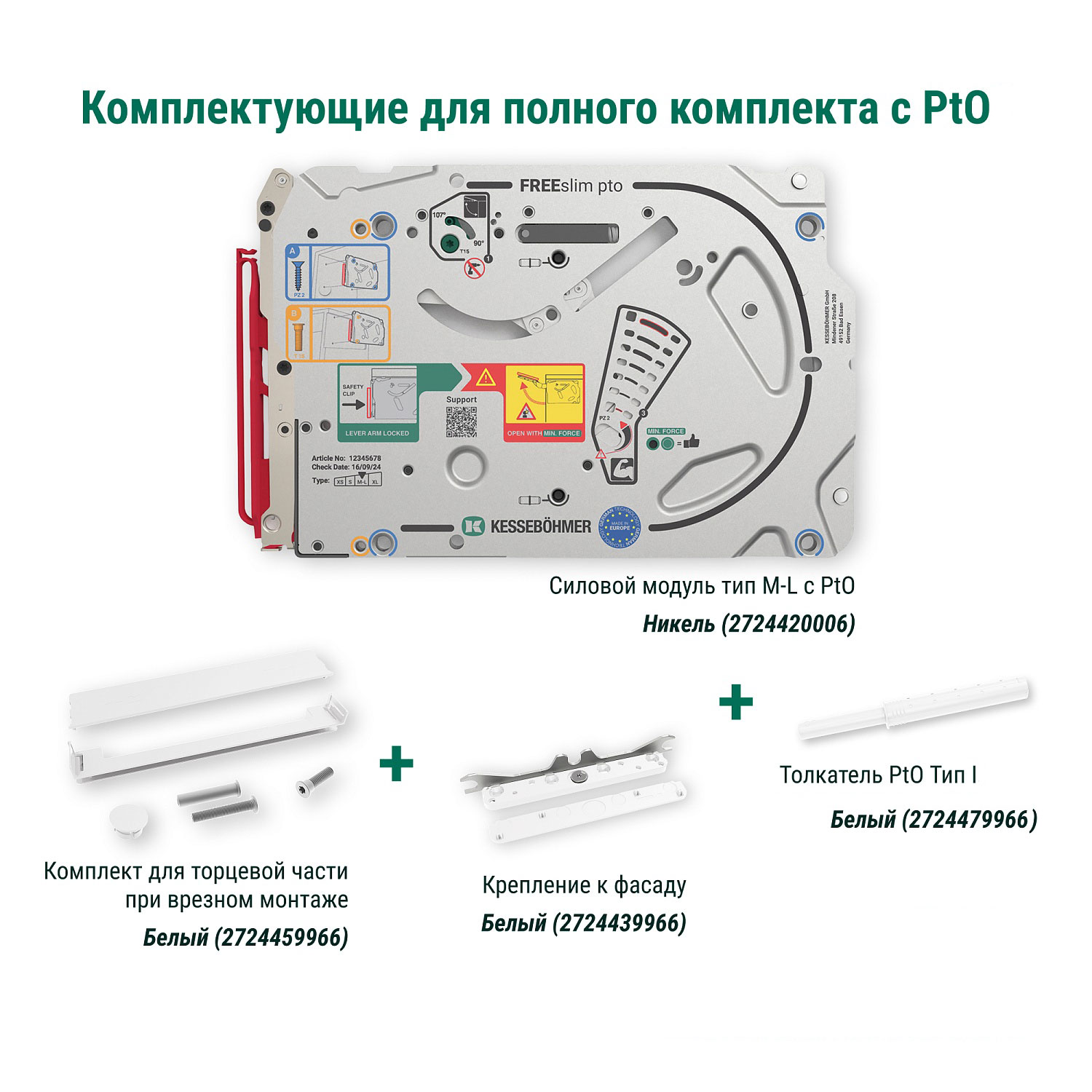 Полный комплект подъемного механизма ФриСлим ФЛАП c толкателем PTO тип I для врезного монтажа, цвет БЕЛЫЙ Kessebohmer | официальный магазин