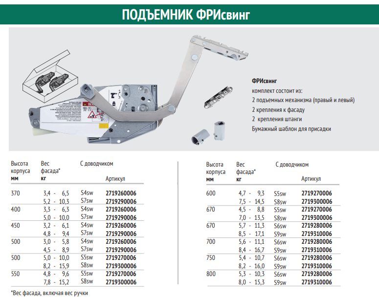 FREEswing Подъемник ФриСвинг, S5sw, H500 - 670 мм, 4,5-10,0 кг (2719270006)