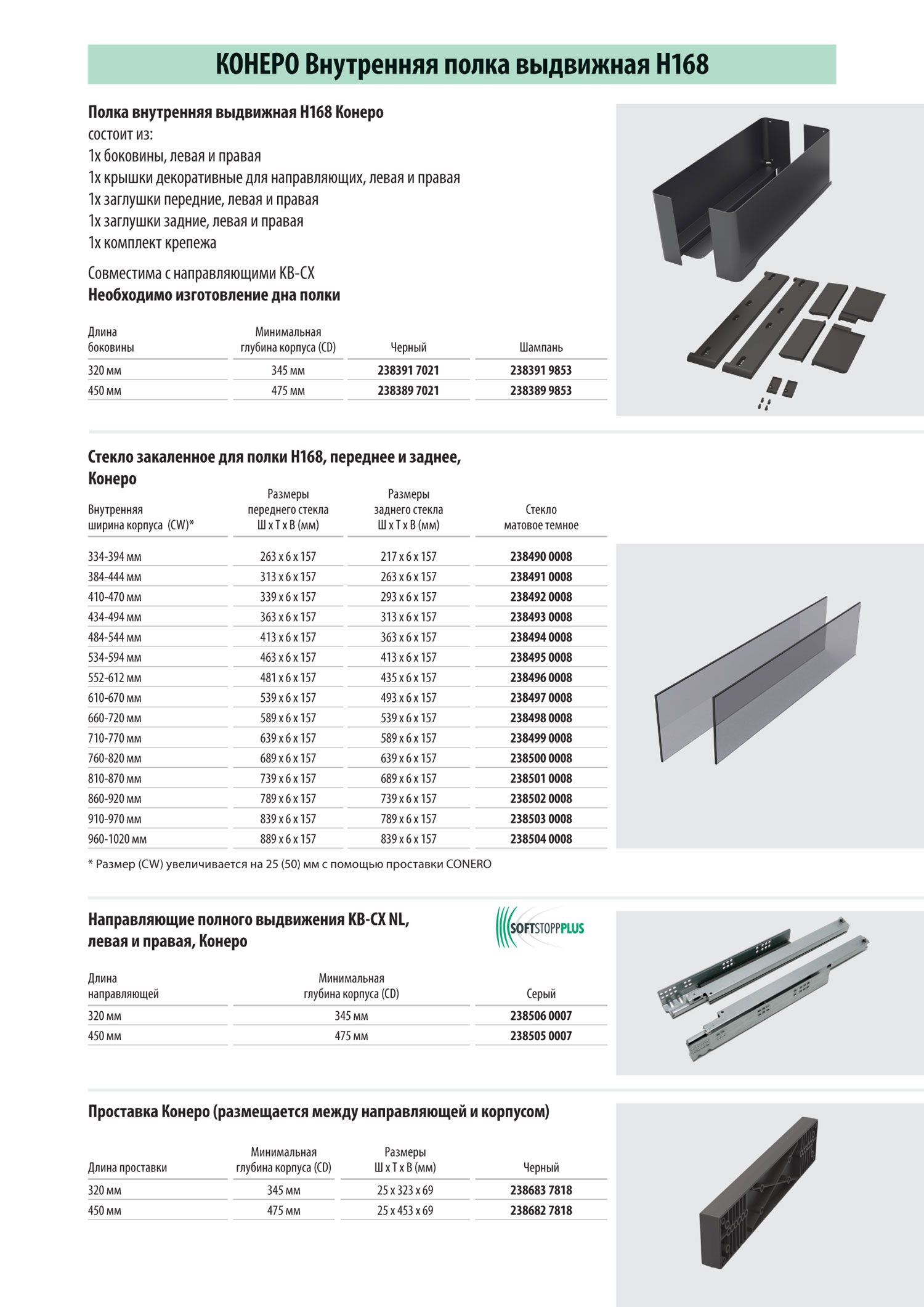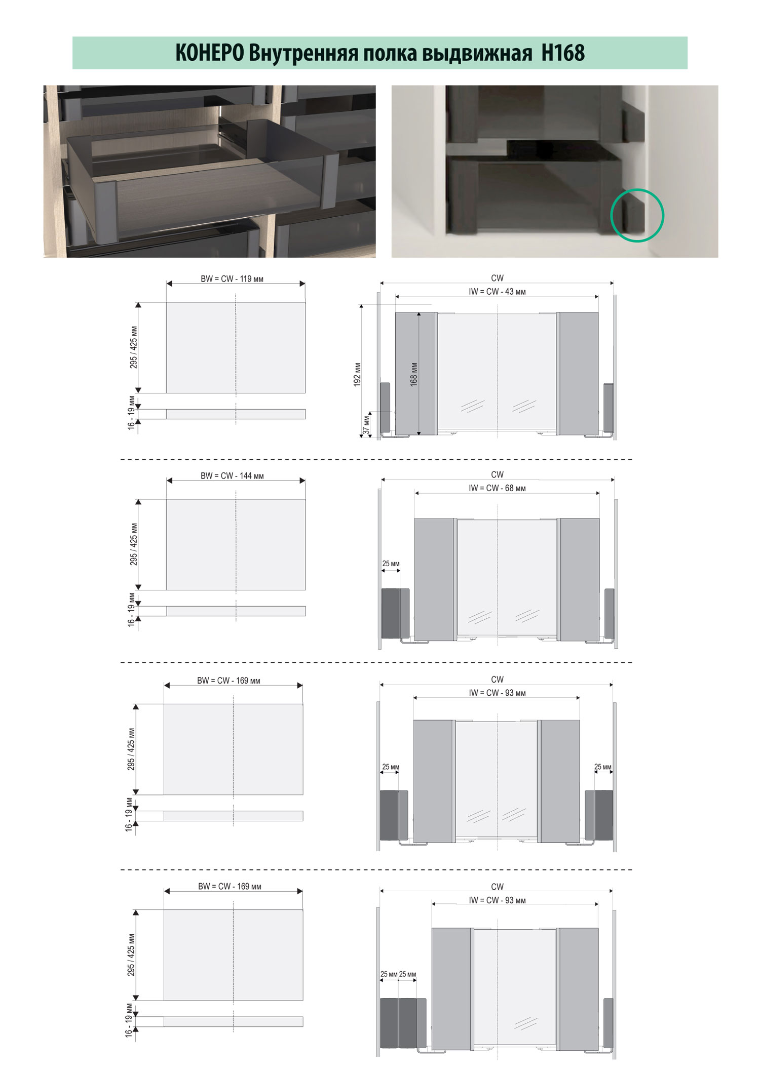 Инструкция по установке Комплект Полка внутренняя выдвижная 450 мм, H 168 Конеро 7,6 мб