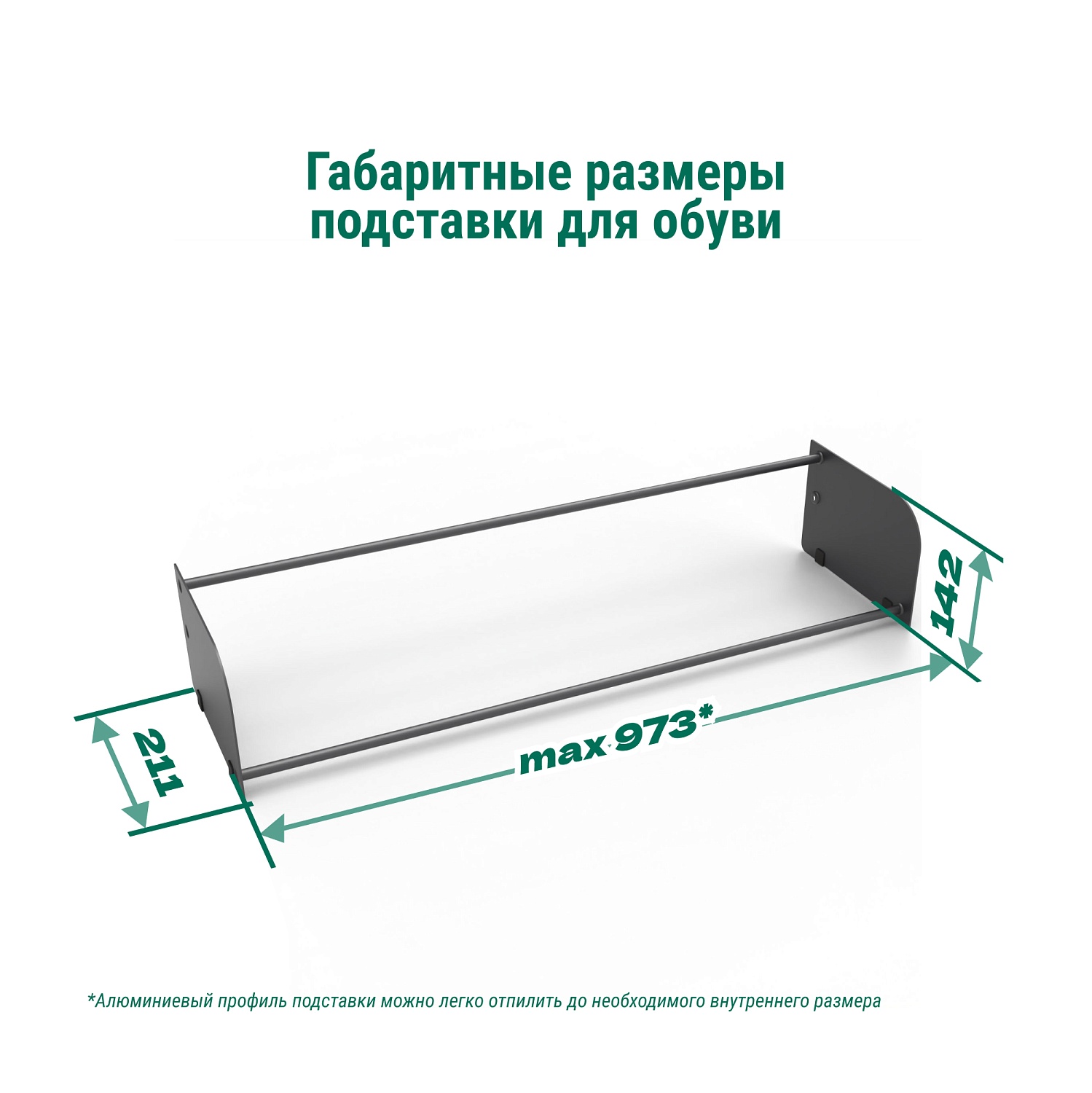 Поскольку профиль подставки для обуви можно устанавливать на двух уровнях, система хранения подходит для обуви любого размера, начиная с 35.