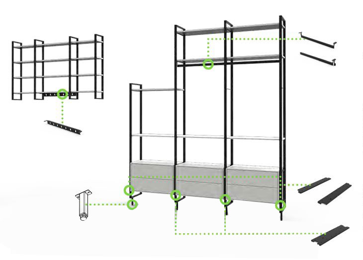 Штанга YouK Юкей для одежды с 2 боковыми держателями, расстояние между модулями 600 мм, цвет черный