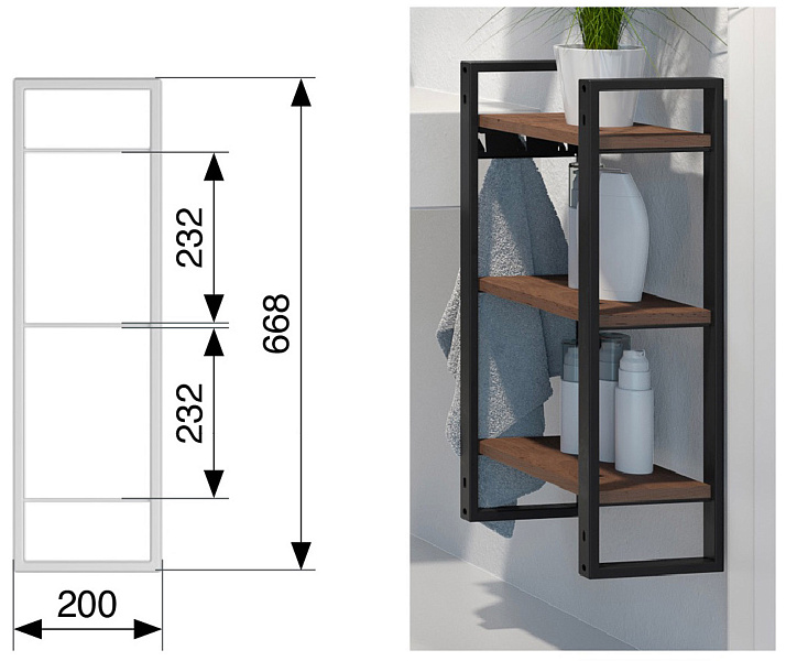 YouK Рама из стального профиля для стеллажных систем 30x200x668 мм, Юкей, 1 шт, цвет ЧЕРНЫЙ
