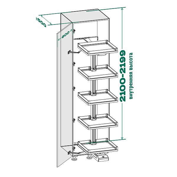 КОМПЛЕКТ левый Конвой Премио 600 мм, H 2100-2199, Арена СЕЛЕКТ, 5 полок, цвет АНТРАЦИТ Kessebohmer | официальный магазин