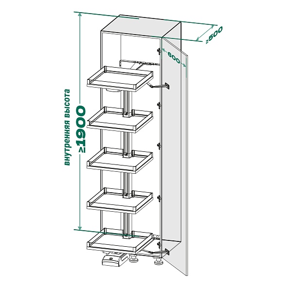 КОМПЛЕКТ правый Конвой Премио 600 мм, H 1900+, Арена ВАРИО, 5 полок, цвет АНТРАЦИТ Kessebohmer | официальный магазин