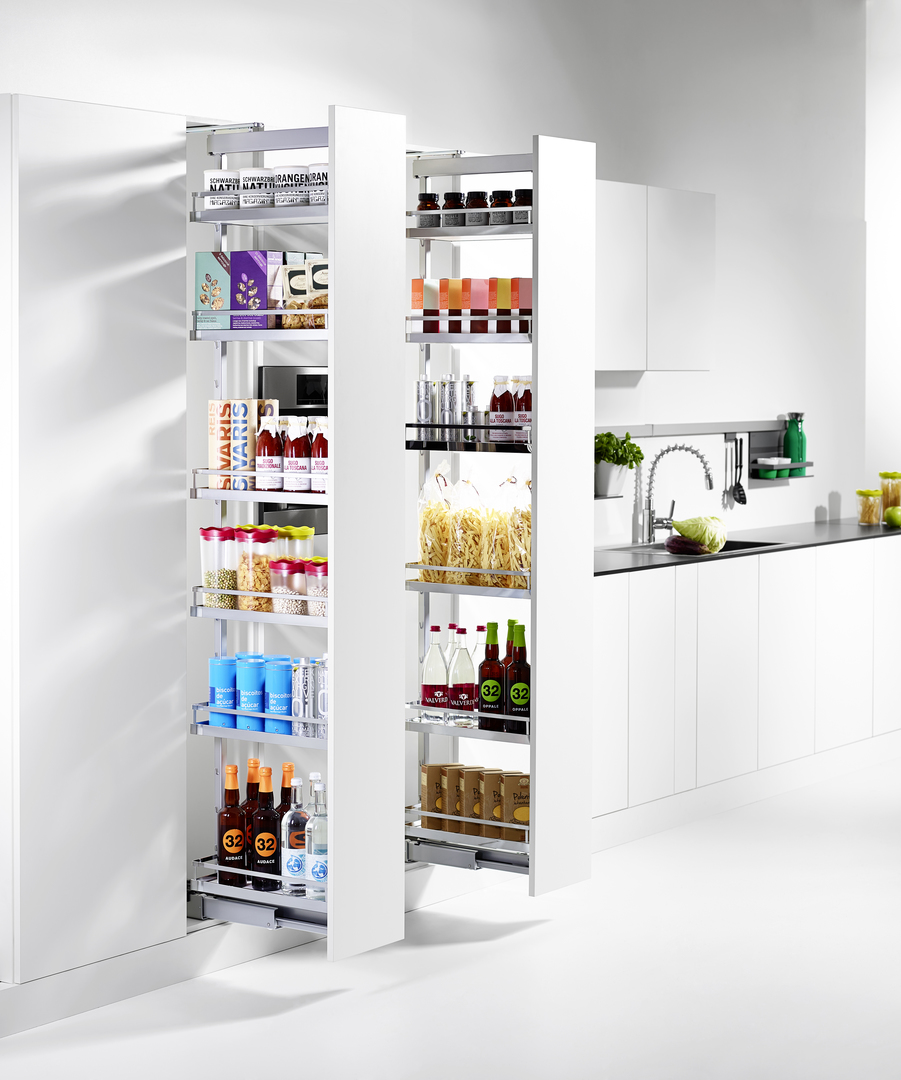 • Механизм Диспенса 90° позволяет организовать централизованное хранение продуктов в узкой секции.