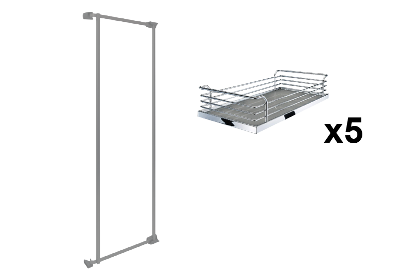 Комплект Тандем Сайд 500 мм, H 1700, Арена КЛАССИК, Рама + 5 полок, цвет ХРОМ, цвет дна Серый, антислип